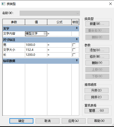 7、将模型文字族文件中的文字内容和文字大小参数关联到族文件中。