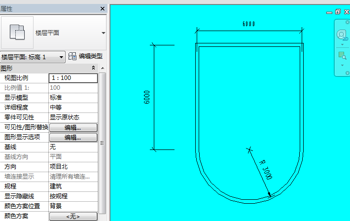 1、新建一个项目,绘制一个长度6M,宽度6M,高度为3.5M,半径为3M的一个模型,如图所示。