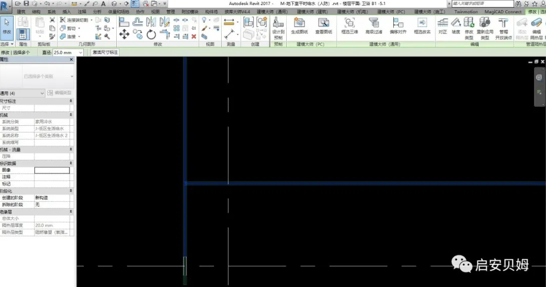 8)管道标注创建完成之后,点击载入到项目,之后点击注释选项卡中的标记工具栏中的按类别标记,点击项目中的管道,就会自动完成管道标注。