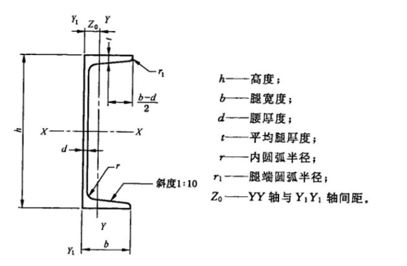 槽钢理论重量计算公式=0.00000785*[h*d+2*t(b-d)+0.349(R*R-r*r)]*L
