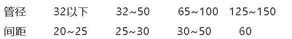 ②管道公称直径为32mm~65mm时,应小于或等于50mm。