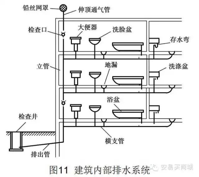 它是室内排水系统的起点,污水、废水从卫生器具排水栓经器具内的水封装置或器具排水管连接的存水弯排入排水管系统。