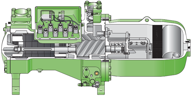 滑阀轴向移动的动作是根据吸气压力和温度,通过液压传动机构来完成 。