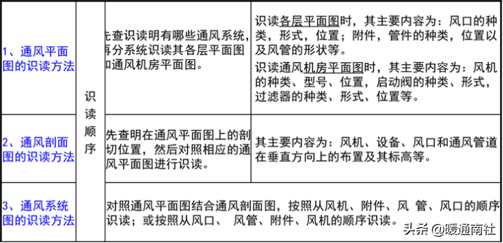 识读顺序:先通风平面图,剖面图再对照通风平面图,剖面图识读通风系统图然后识读详图。