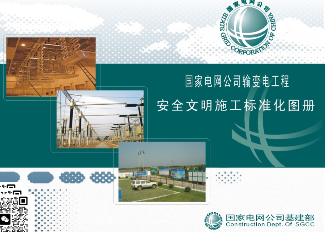 国家电网公司 STATE GRID CORPORATION OF CHINA 国家电网公司输变电工程 安全文明施工标准化图册 国家电网公司基建部 Construction Dept. Of SGCC 输变电工程安全文明施工标准化图册 国家电网公司输变电工程 安全文明施工标准化图册 审定:孙佩京 主审:胡玉海 刘 博 策划:徐志军 范仁华 制图:谢 煜 徐志军 吴 双 国家电网公司基建部 Construction Dept. Of SGCC 输变电工程安全文明施工标准化图册 前 言 文明施工是安全生产的基础,是时代进步的需要。创造安全、文明的工程建设环境,是保证电力建设工程安全生产的重要措施,建设工程文明施工程度的高低直接反映出建设工程项目的现场安全管理水平。 为全面提升公司建设管理的工程项目的安全文明施工管理水平,突出“以人为本”和“绿色施工”的时代要求,依据国家电网公司有关工程建设安全管理文件要求,公司编制了《输变电工程安全文明施工标准化图册》,以指导公司负责建设管理的输变电工程建设现场安全文明施工管理工作。 本图册主要包括:输变电工程安全文明施工标准化工作规定、安全设施标准、安全标志标准、安全标识标准,以及临建设施及施工总平面布置等内容。旨在通过前期周密的工作策划,将规范的安全文明施工管理关口前移,并将其贯穿到工程建设各个阶段,达到“施工有序、设施规范、环境整洁”的安全文明施工效果,促进工程建设的安全持续发展。 本图册在编制过程中,得到了国网建设有限公司、安徽省电力公司、湖北省输变电工程公司等单位的大力支持,在此一并表示感谢。 执行过程中的任何问题及建议,请随时与国网公司基建部联系。 联系电话:010-66597748 电子邮箱:zhijunrxu@sgcc.com.cn 国家电网公司基建部 Construction Dept. of SGCC 输变电工程安全文明施工标准化图册 现场安全文明施工·安全标识主色调 一、基准色是国家电网公司标准色谱,使用时遵循(国家电网公司视觉识别系统应用手册)。 二、辅助色:蓝色、绿色或白色 三、字体主色:白色、蓝色、红色、橙色或黑色 四、安全设施及警示标志: “黄”、“红”、“白”、“黑”不同颜色 五、建筑物色调: 固定:蓝、白色;活动:蓝色 六、其它色调: “灰色”、“银白”、“桔红”主要用于小型工器具、用电设施等设备,大型机具用本色刷新。 七、色调对比: 深绿色 橙Orange 绿Green 蓝Blue 黄Yellow 红Red 银白Silver 灰Gray 黑Black 白White 国家电网公司基建部 Construction Dept of SGCC 输变电工程安全文明施工标准化图册 标准化工作规定 第一章 设施、用品 第一节 安全设施类 01 安全围栏 A-01 02 安全隔离网 A-02 03 孔洞盖板 A-03 04 安全通道 A-04 05 组合围栏 A-05 06 消防设施及器材架 A-06 07 氧气瓶、乙炔瓶托架 A-07 08 下线爬梯 A-08 第二节 用电安全类 09 组合式变压器 B-01 10 低压配电箱 B-02 11 便携式电源箱 B-03 12 固定式照明灯 B-04 13 移动式照明灯 B-05 14 施工接地线 B-06 第三节 安全防护用品类 15 防静电服 C-01 16 安全帽 C-02 17 万用绝缘手套 C-03 18 工作服及防护服 C-04 19 绝缘鞋 C-05 20 速差自控器 C-06 国家电网公司基建部 Construction Dept. of SGCC