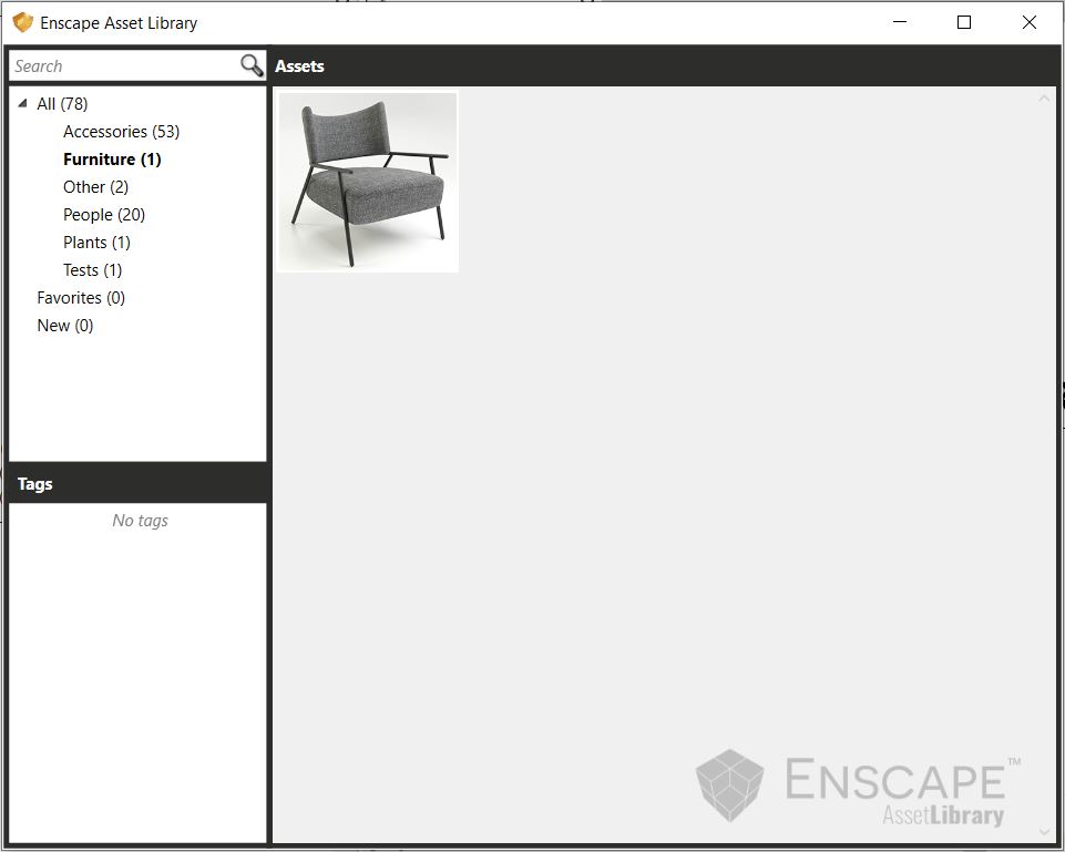 大功告成!在Enscape中检查库面板。您应该在那里看到您的资产!如果您在学习本教程时遇到麻烦,可以在此处(https://www.dropbox.com/sh/senvtug878nl93s/AABl056mwKd93cB9LgEnsMWXa?dl=0)下载文件示例。
