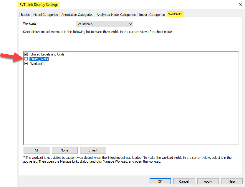 但是,要在项目范围内而不是在每个视图中关闭它们,请在模型中创建一个同名的工作集,如下所示……