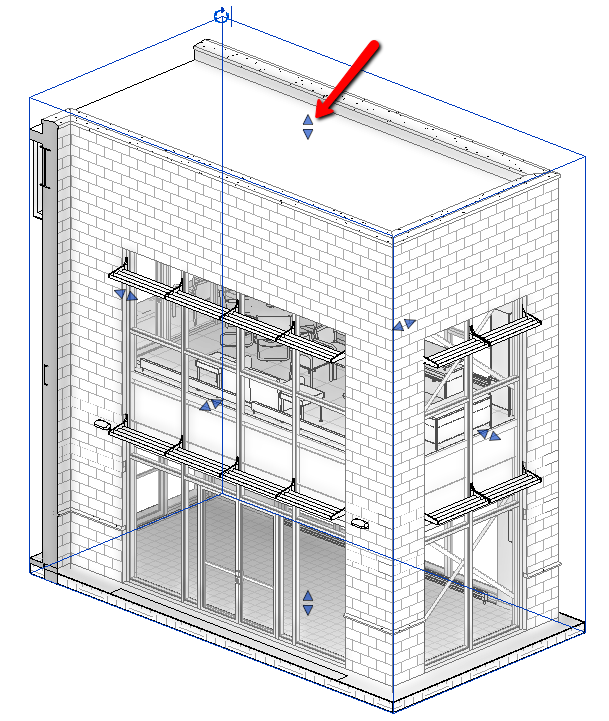 结果是您的默认3D视图被打开,并且“截面框”被打开并围绕所选元素进行调整,如下图所示。